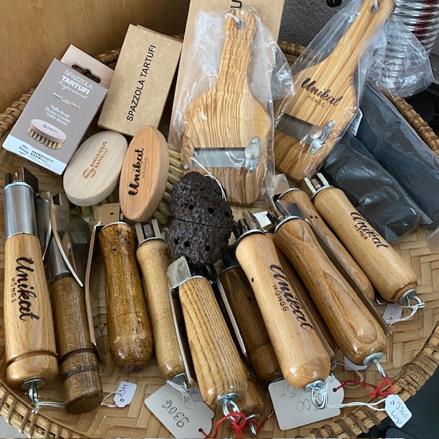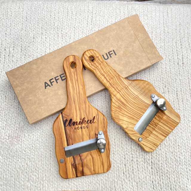in Italien hergestellter Trüffelhobel. Die Klinge lässt sich sehr fein einstellen um die Trüffel in hauchdünne Scheiben hobel zu können, denn je feiner desto mehr Aroma kann sich entfalten.